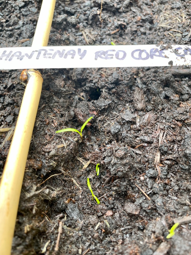 Red cored Chantenay carrots – I know that these are relatively easy to grow as I had a successful harvest last year. Well I say successful, I actually mean I managed to grow them but I learned an important lesson. You need to sow then thinly 1cm deep in drills 30cm apart and thin the seedlings to 10cm apart when they are large enough to handle. Do not, and I repeat, do not, just sprinkle all the seeds haphazardly in one little pile. I did this last year and the result was a few decent size carrots, with most of them being little bigger than a sewing needle. Micro carrots anyone? The seeds can be sown from April to June for harvesting between August and November. Carrots are so rich in vitamins and again can be used in salads, as a hidden veg or as an accompaniment to most meals or a scrumptious roast dinner! Again I have some tiny seedlings after eleven days, that are approximately 2cm tall at the moment. The leaves don’t resemble carrot leaves yet but I’m sure they will in time.