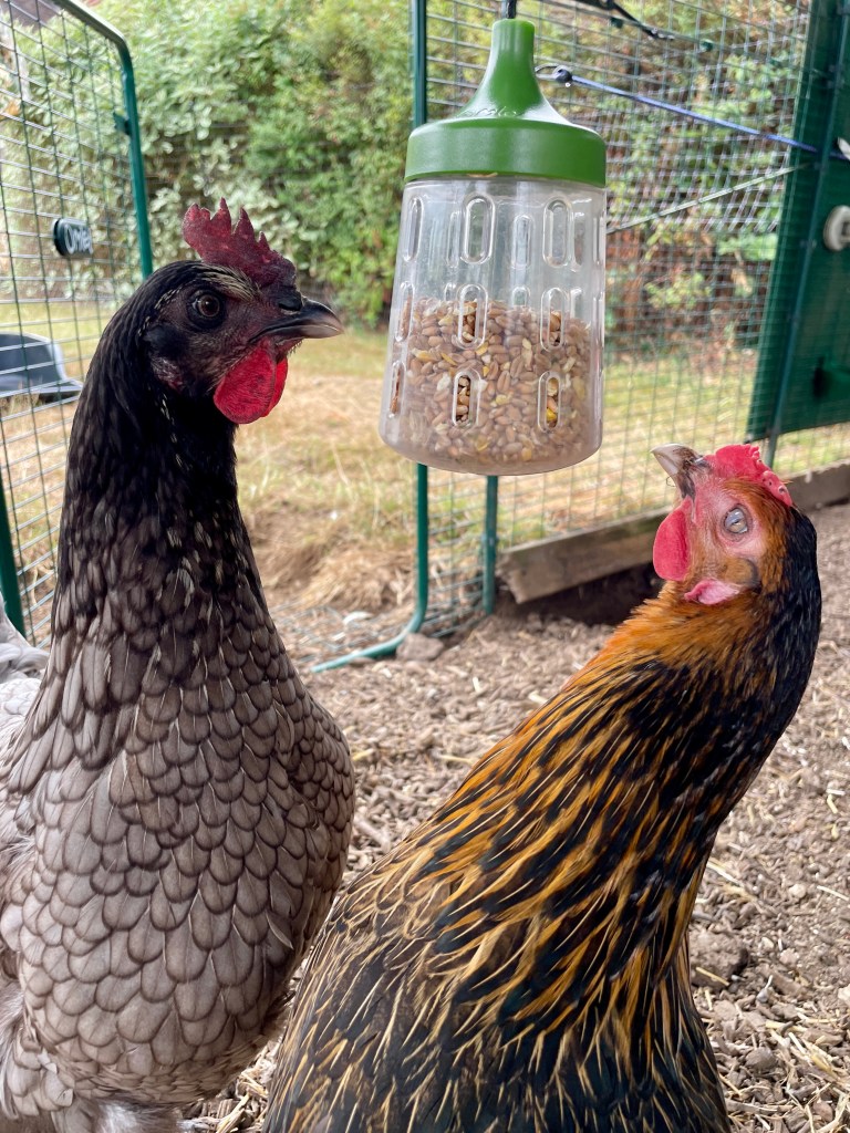 When you’ve decided the time is right to introduce your hens to each other, initially keep the original hens contained and let the new hens out to explore a free-ranging or larger area first. This will help them to find their feet and feel confident in their surroundings. After a while, let out your original hens and closely monitor this stage, observing the behaviour of all the birds. It is beneficial to move around ‘furniture’ such as logs, perches, feed bowls, peck toys etc to make the territory seem more neutral and also ensure that there are lots of distractions for all the chickens. You could also try adding extra treats, toys or perches for extra interest.