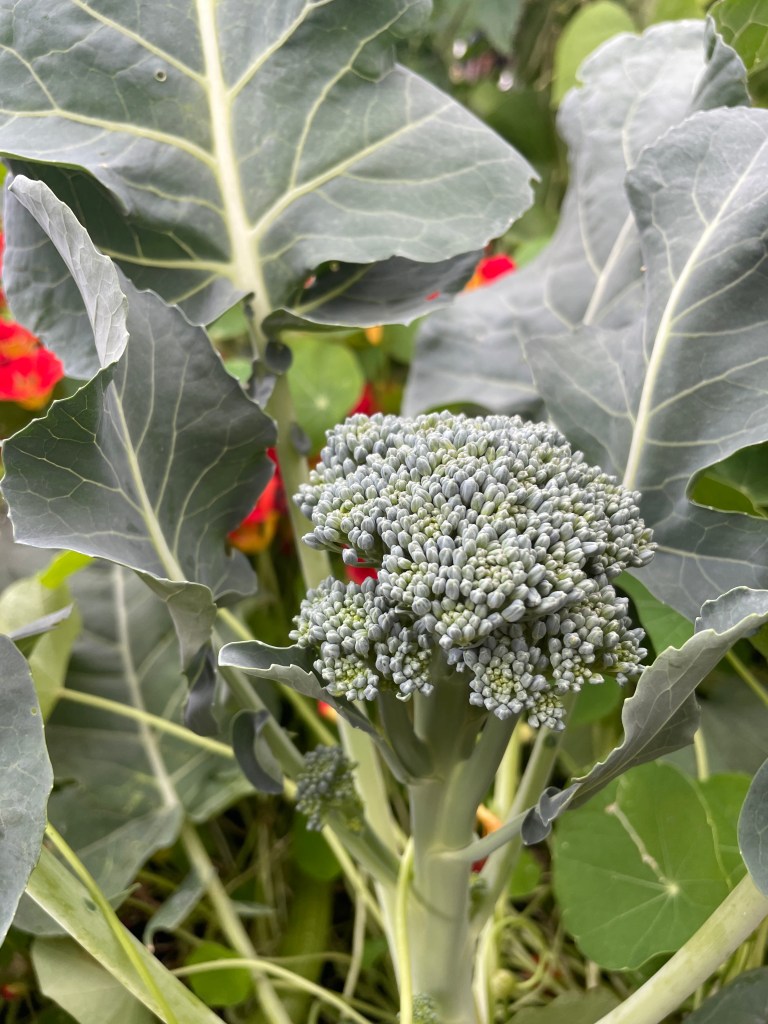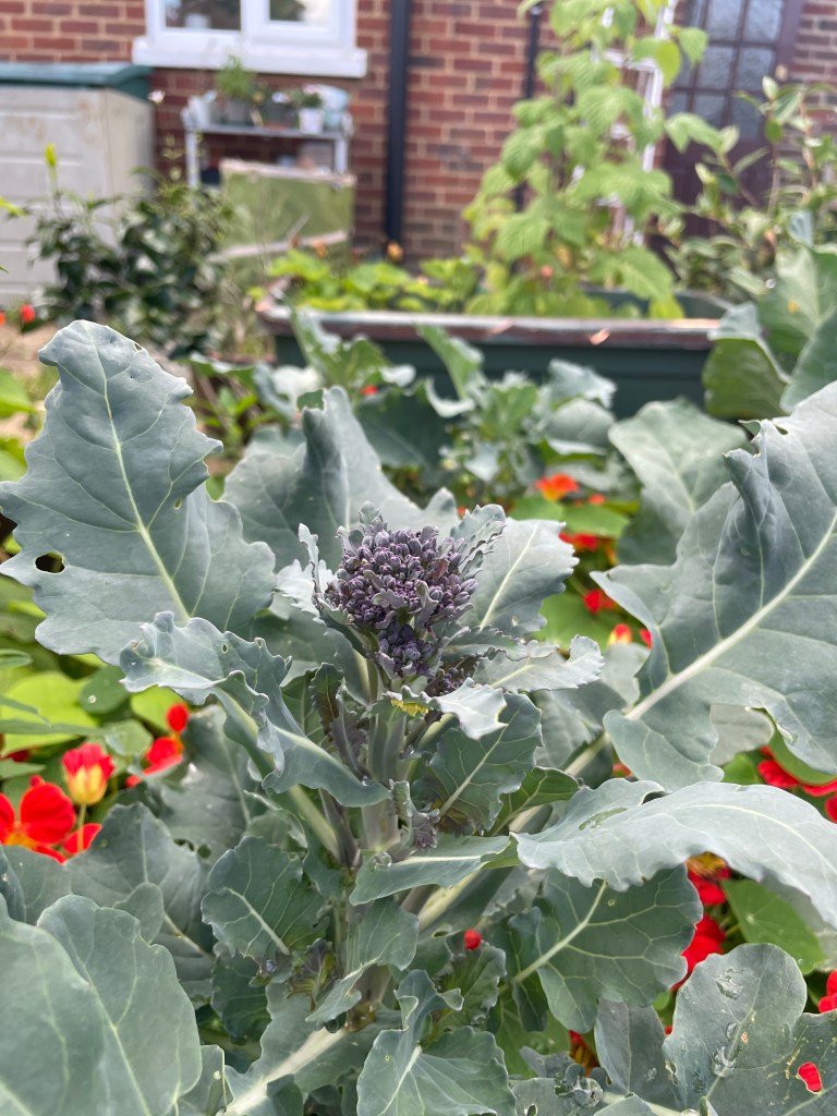 This year we’ve already harvested quite a few delicious courgettes, we’ve also got an abundant crop of tasty runner beans that will be ready soon. Also in the bed are broccoli, purple sprouting broccoli and tender stem broccoli (yes we like broccoli!!) We also have beetroot and tomatoes that are coming along well. in the bed I’ve also got marigolds and nasturtiums growing, which as well as looking pretty will help to attract pollinators to the area and hopefully any caterpillars or other insects will munch on them instead of our produce!