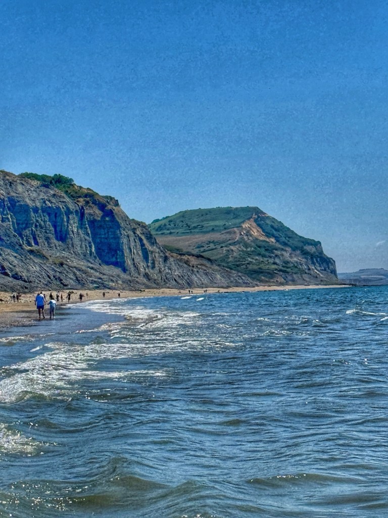 If you’re in Dorset and looking for a beach that’s the best of both worlds – a destination for fun, yet still feeling peaceful; a sandy shore with small shingle, not clunky great rocks to manoeuvre round; clean sea water for paddling in or swimming; good facilities yet not too touristy; perfect for adults, kids and dog-friendly, I’ve got a Jurassic treat for you!