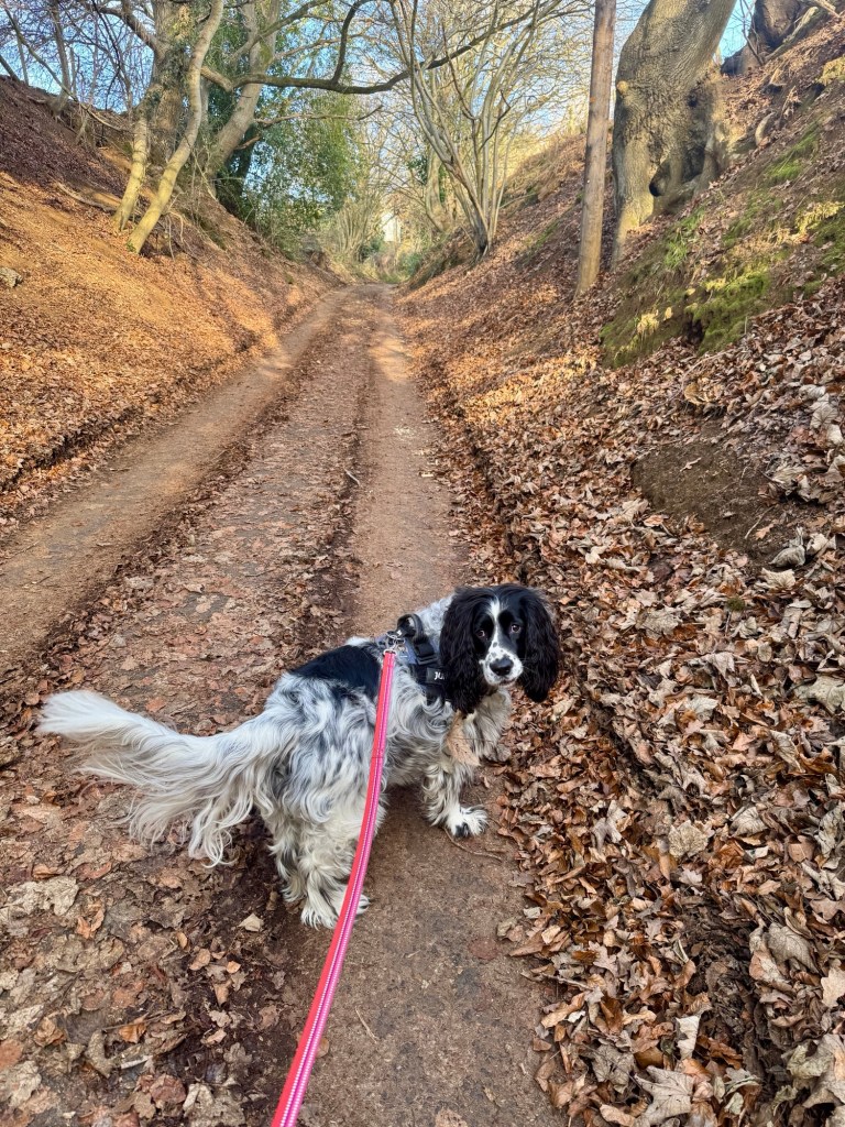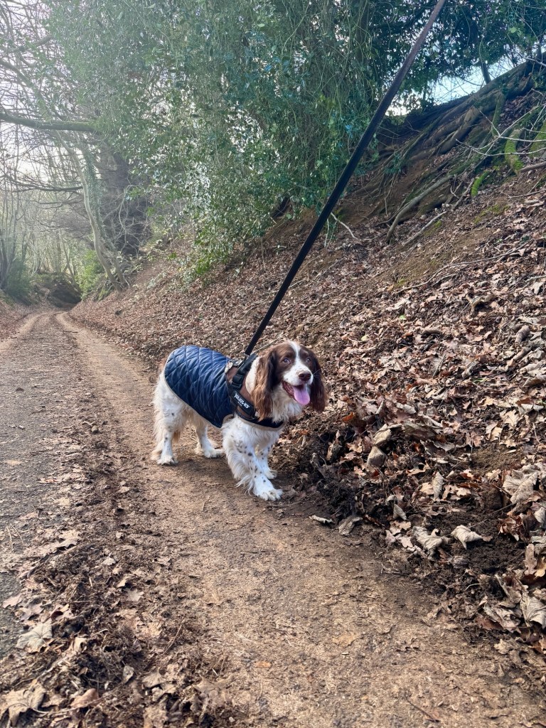It’s important to add that Ellie is approximately seven years old, although she’s a rescue so we can’t be 100% sure. Thankfully at the moment she’s not showing any signs of arthritis or slowing down. We need to find a balance so that she still gets the exercise and enrichment that she needs too. When we’re out we can throw a ball or another one of her favourite toys gently for her and encourage her to run around looking for things, while Duke is gently trotting around.